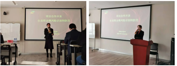 培訓由集團風控法務部部長邵淑毅主講,培訓課題為《項目合作開發(fā)全流程法律風險識別和防范》。邵部長結(jié)合豐富的房地產(chǎn)項目合作開發(fā)投資及法務管理風控經(jīng)驗,聚焦標的項目、目標公司、交易過程三個維度,詳細講解了標的項目權(quán)屬爭議、開發(fā)可行性、目標公司股權(quán)瑕疵、治理結(jié)構(gòu)、項目鎖定、資金安全等共計24項重大風險。從全流程風險防范的角度,提出四個方面的應對措施:充分全面的盡職調(diào)查、合理的交易方案、嚴謹規(guī)范的合同文本、有效的履約管理。最后,邵部長提出集團法務及投資人員在工作中應務必盡心盡責、建立全流程把控理念,在項目風險防控中創(chuàng)造價值。