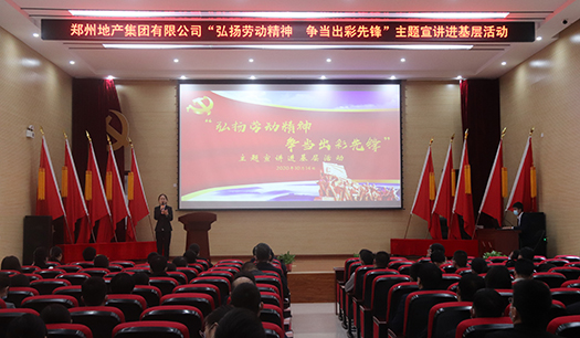 為進一步深化市國資委“黨的創(chuàng)新理論萬場宣講進基層”活動,培育和踐行社會主義核心價值觀,10月14日下午,鄭州地產(chǎn)集團“弘揚勞動精神 爭當(dāng)出彩先鋒”主題宣講活動在西流湖公司中原新區(qū)聯(lián)合黨委基層黨校成功舉辦。集團宣講團成員、西流湖公司黨支部、鄭地發(fā)展公司員工及中原新區(qū)項目參建單位代表共120余人參加活動。