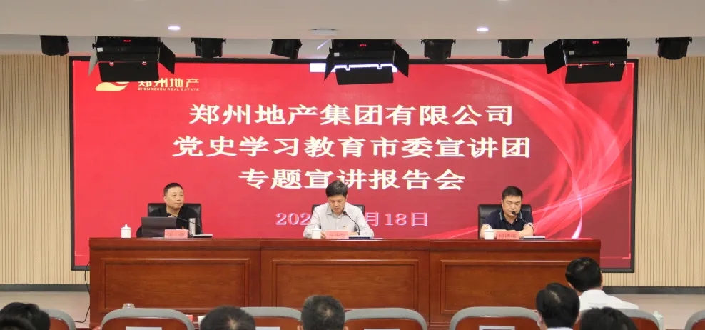 為持續(xù)推進(jìn)黨史學(xué)習(xí)教育走深走實,5月18日上午,鄭州市委宣講團走進(jìn)鄭州地產(chǎn)集團,在集團301多功能廳開展黨史學(xué)習(xí)教育專題宣講報告會。報告會由鄭州市委宣講團成員、鄭州工程技術(shù)學(xué)院馬克思主義學(xué)院副教授張豪主講,市國資黨史學(xué)習(xí)教育第二巡回指導(dǎo)組組長、四級調(diào)研員段德強,指導(dǎo)組成員張詩雨、陳祥斐到會巡聽旁聽,地產(chǎn)集團領(lǐng)導(dǎo)班子、總部全體員工,各子公司支部書記、黨建部門負(fù)責(zé)人等共計150余人參加現(xiàn)場報告會,各子公司員工共計170余人通過線上直播進(jìn)行觀看,會議由地產(chǎn)集團黨委書記、董事長萬永生主持。