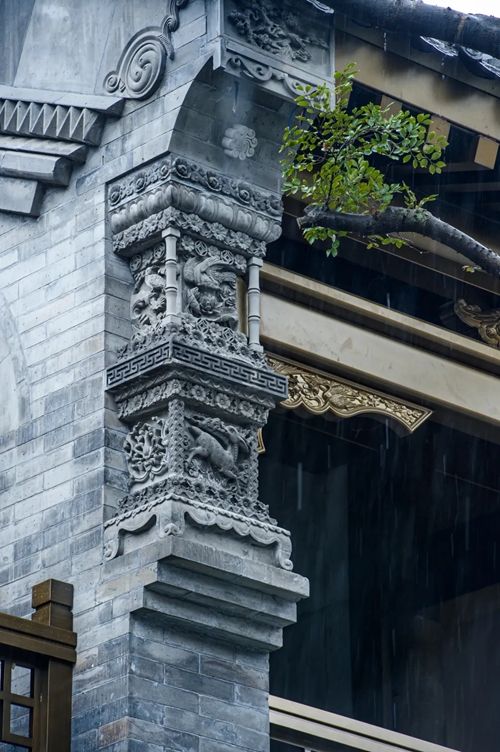12號樓主題為獅子,主題來源于三門峽靈寶函谷關(guān),象征“事事如意”的獅子在柱子、平板枋、額枋、卡子花、假梁頭等構(gòu)件均有出現(xiàn)。