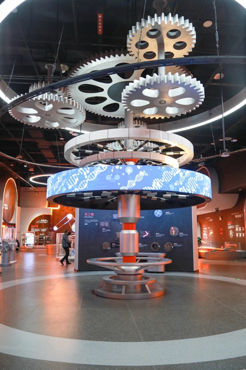 下一站是“看得見的奧秘”展廳。在參觀中,不難發(fā)現(xiàn),這里主要提煉了物質(zhì)、運(yùn)動(dòng)和能量三個(gè)小切口作為知識(shí)內(nèi)容,以“透過現(xiàn)象看本質(zhì)”為主題,劃分“物質(zhì)世界”“能量法則”“運(yùn)動(dòng)大觀”“度量萬(wàn)物”四個(gè)分主題展區(qū)。