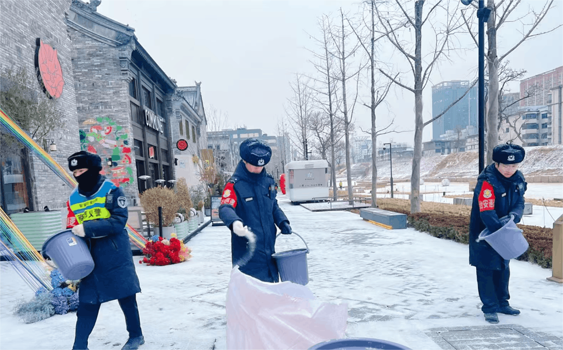 為保障亳都·新象街區(qū)安全運行,商都發(fā)展公司提前部署應(yīng)對舉措。備足除雪物資,組織物業(yè)連夜掃雪除冰;通過商戶群、街區(qū)循環(huán)廣播推送防寒防凍、防滑提醒;安排工程人員對設(shè)施設(shè)備做足保溫防護,全方位排查隱患,為商戶與市民筑牢安全屏障。