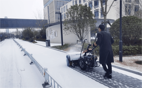 城發(fā)產(chǎn)城公司密切關(guān)注天氣變化,提前部署應(yīng)急隊伍。采用“機械+人工”協(xié)同模式,按“先主后次”原則,用除雪滾刷快速清掃主干道,人工細化清理死角,最后鋪灑融雪劑,實現(xiàn)路面無積雪、無結(jié)冰,為園區(qū)企業(yè)員工出行保駕護航。