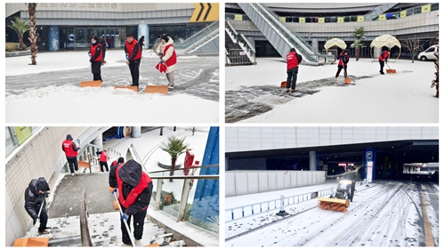 奧體中心迅速啟動雨雪應(yīng)急預(yù)案,聚焦核心通道與經(jīng)營區(qū)域,多輪布撒融雪劑、清除積雪、防護設(shè)施,不間斷開展防墜雪巡查。黨員突擊隊帶頭沖鋒,對南北門、東廣場等重點區(qū)域掃雪除冰,全力保障人員與車輛通行安全,確保運營平穩(wěn)有序。