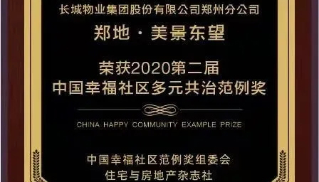 鄭地·美景東望項(xiàng)目榮獲“2020第二屆中國幸福社區(qū)多元共治范例獎(jiǎng)”。