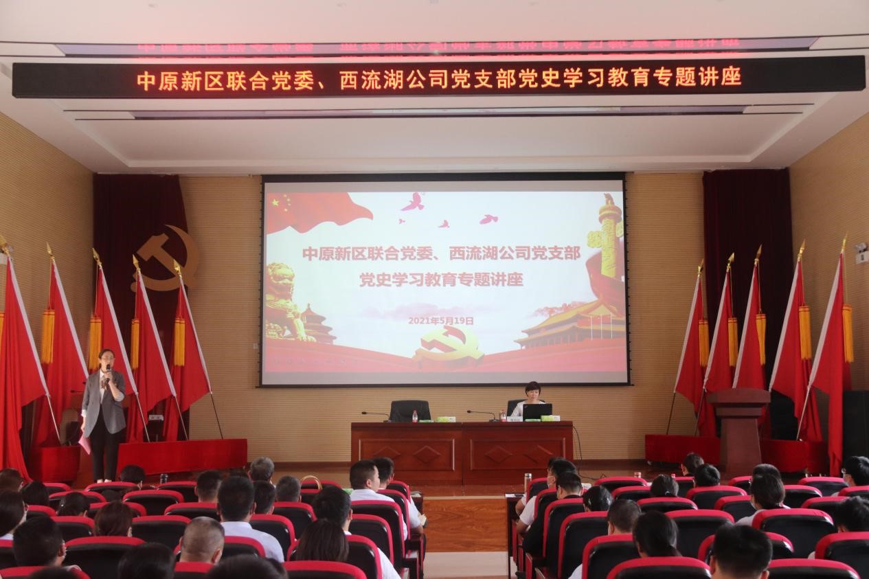 黨史是最好的教科書和營養(yǎng)劑,在中國共產(chǎn)黨成立100周年之際,為扎實開展好黨史學(xué)習(xí)教育,引導(dǎo)廣大黨員干部職工知史愛黨、知史愛國,進一步樹牢“四個意識”、堅定“四個自信”、做到“兩個維護,推動黨史學(xué)習(xí)教育取得實效,5月19日下午,中原新區(qū)聯(lián)合黨委、西流湖公司黨支部邀請河南省委黨校黨史教研部副主任、副教授楚向紅老師開展黨史學(xué)習(xí)教育專題講座。公司領(lǐng)導(dǎo)班子、西流湖公司、鄭地發(fā)展以及中原新區(qū)聯(lián)合黨委黨員職工代表共計150余人參加講座。